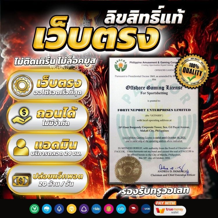 ตอบ : ใช้เทคโนโลยีเข้ารหัส SSL และมีใบรับรองจากหน่วยงานตรวจสอบเกม (เช่น BMM Testlabs) แต่ควรศึกษากฎหมายในประเทศก่อนเล่น